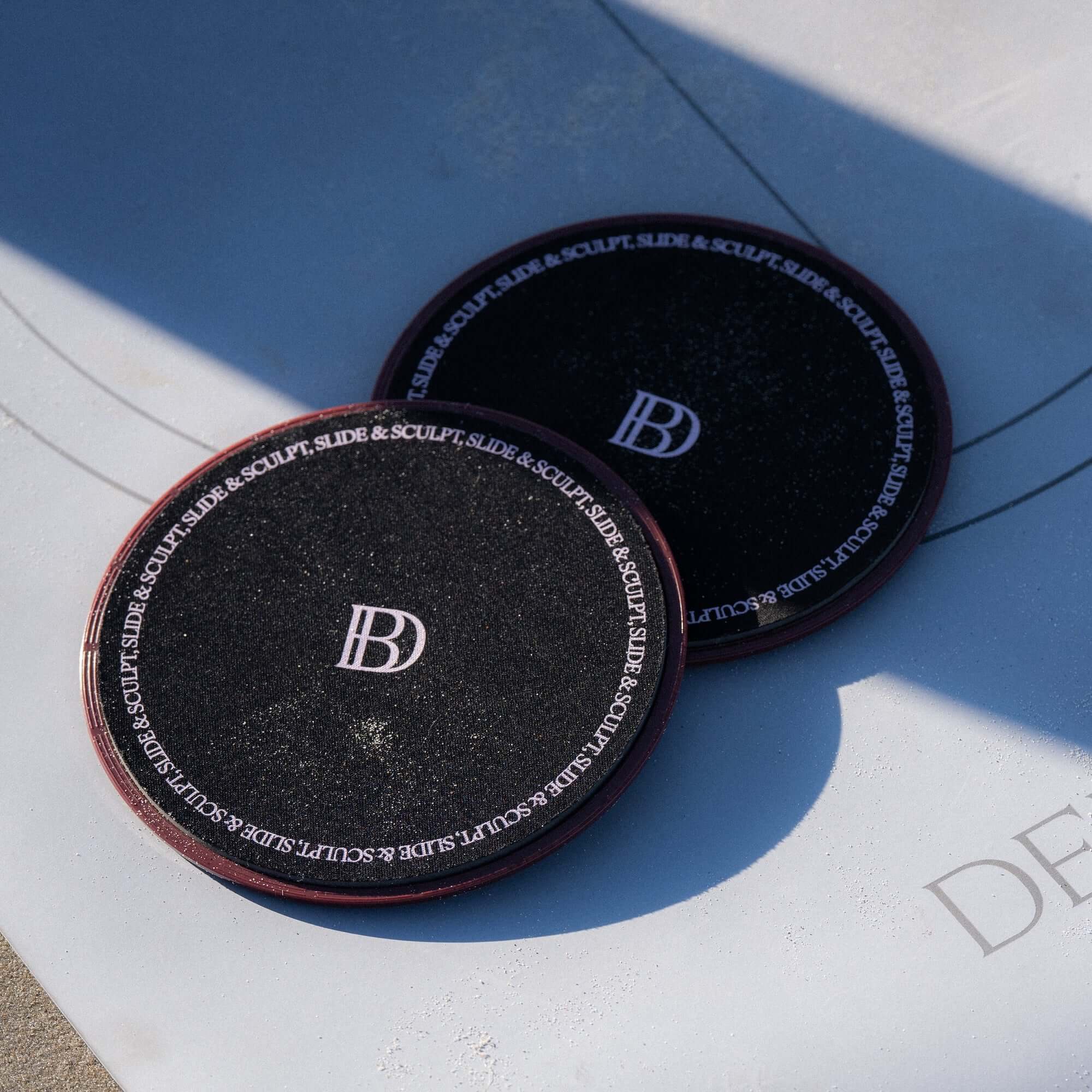 Your sliders can be used under the feet for lean, toning of the legs and glutes, or under toes during plank for a deep core engagement.